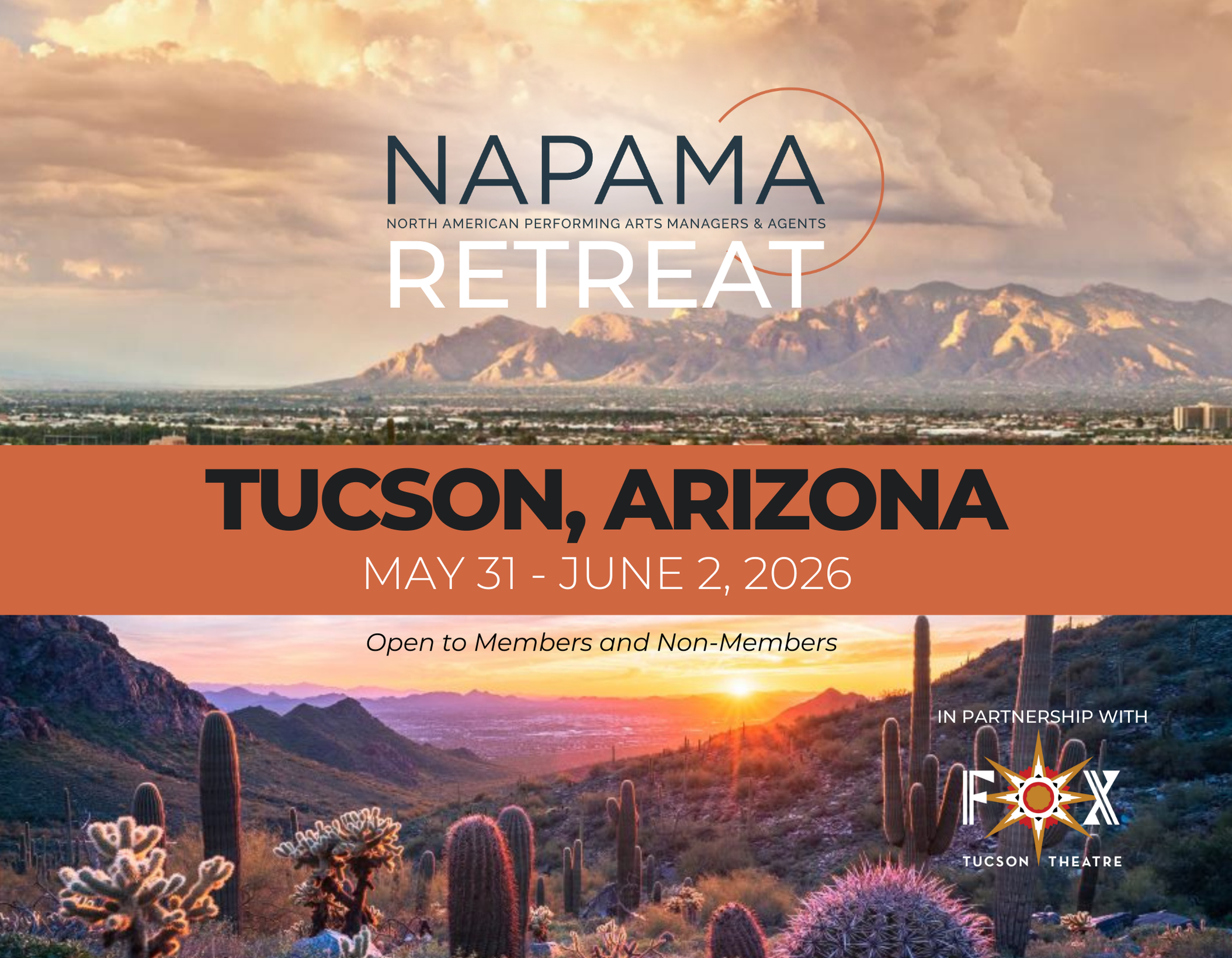 This year’s theme is “Oasis of Innovation” - The arts industry often feels like a challenging landscape, especially with funding drying up and shifting audiences and economic influences. To survive and grow in such an “arid” environment, ingenuity and adaptability is key. Join us in Tucson, AZ, a vibrant cultural mecca in the heart of the Sonoran Desert, as we explore creative solutions, develop deeper or new skills, connect with collaborative colleagues across the touring community, and rejuvenate our passion and commitment to the arts.